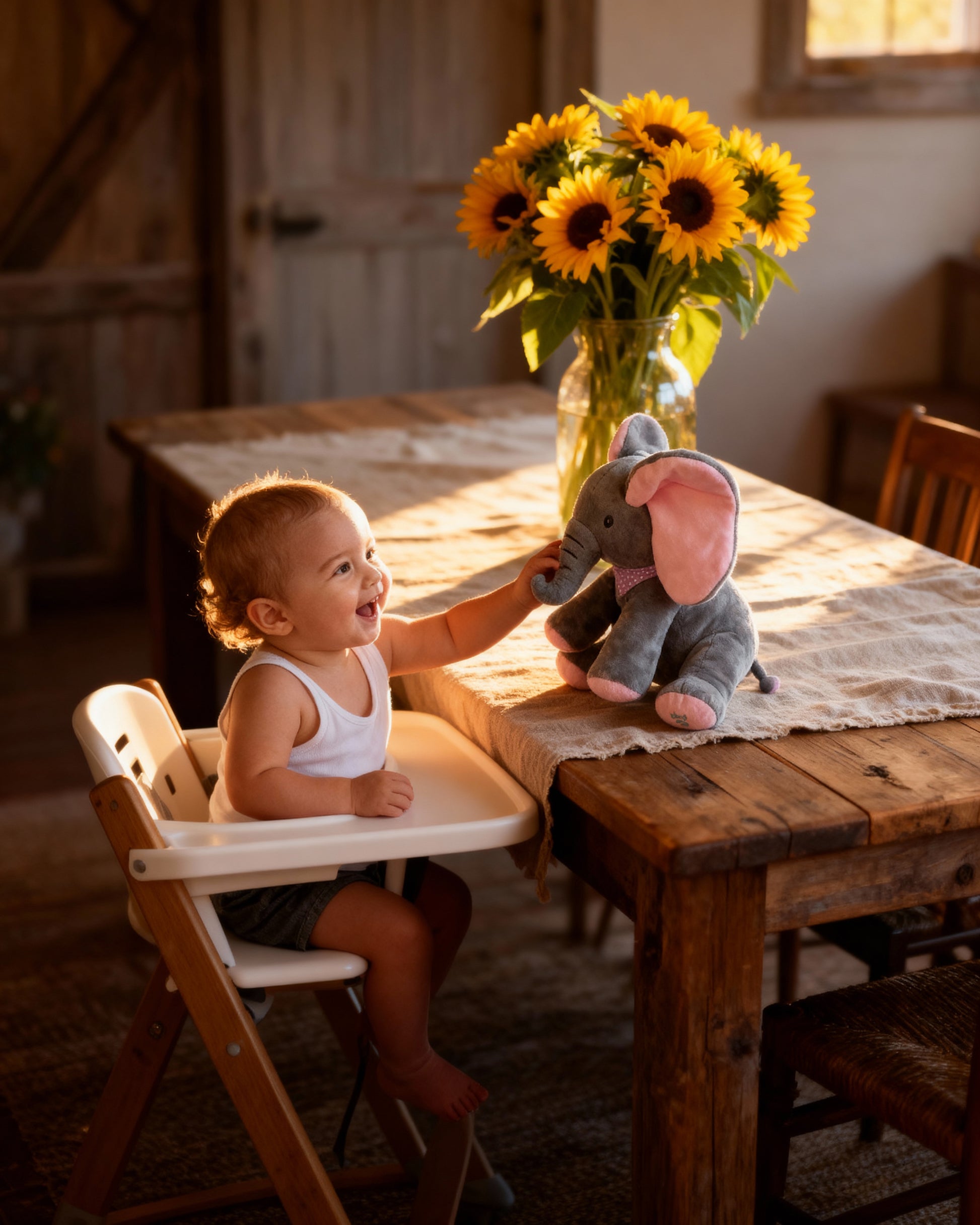 הפיל מתאים לשימוש על משטח ישר כמו עריסה, לול או שטיח פעילות, ותורם לרגיעה גם מחוץ לבית.